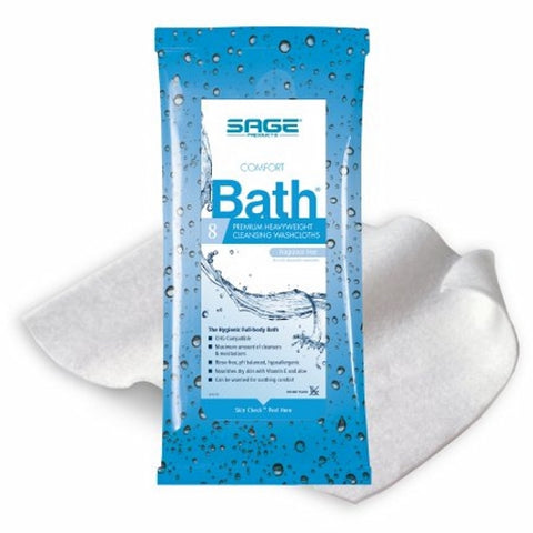 Sage, Rinse-Free Bath Wipe Comfort Bath Soft Pack Unscented, 1 Packet / 8 Count