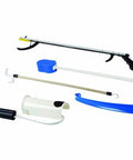 - Includes a 32" reacher, formed sock aid, 18" plastic shoehorn, 24" dressing stick and contoured bath sponge